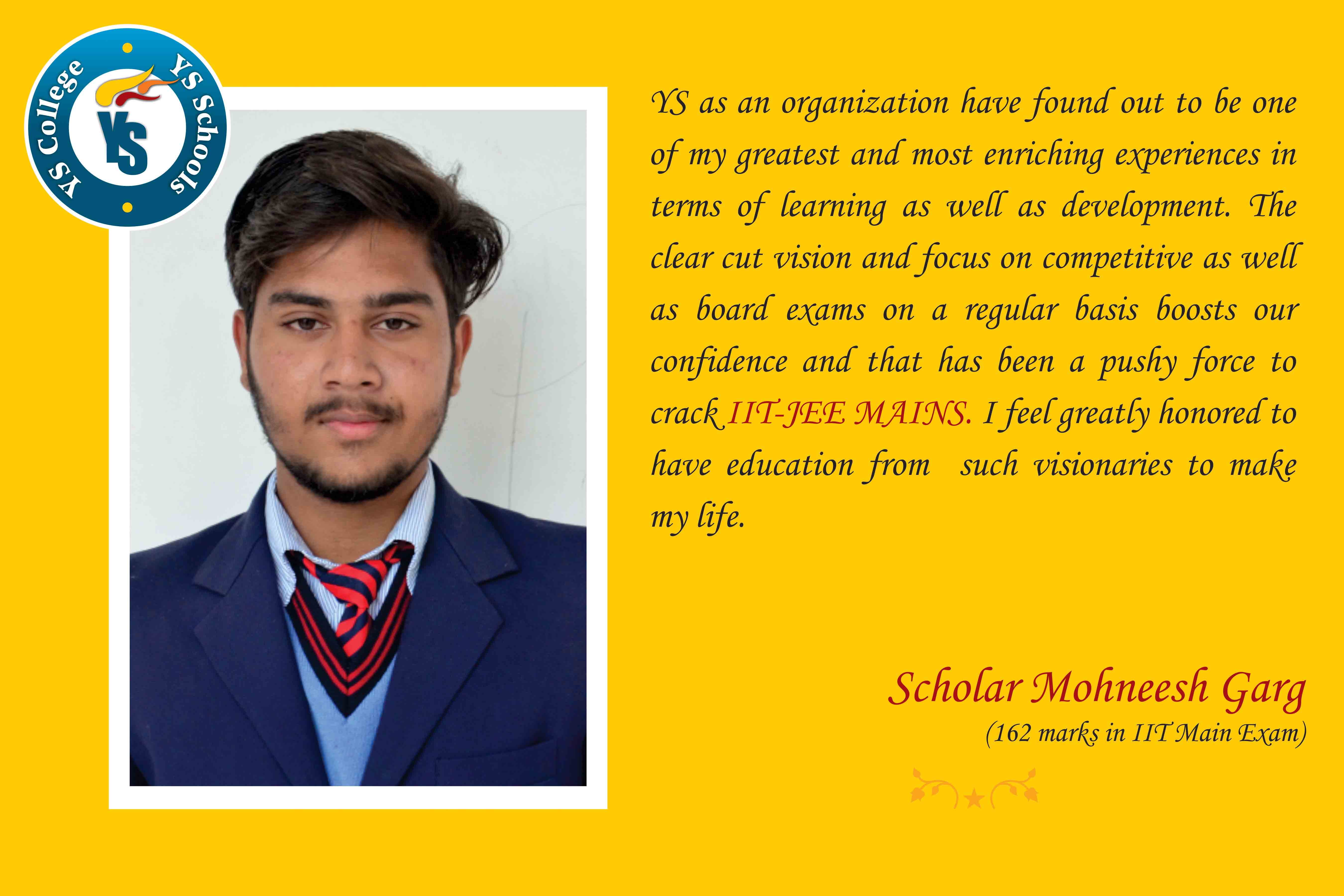 In 2011, One of Our Student, Scholar Vineet Garg, brought laurels to the School by securing 421st Rank in IITJEE Examination