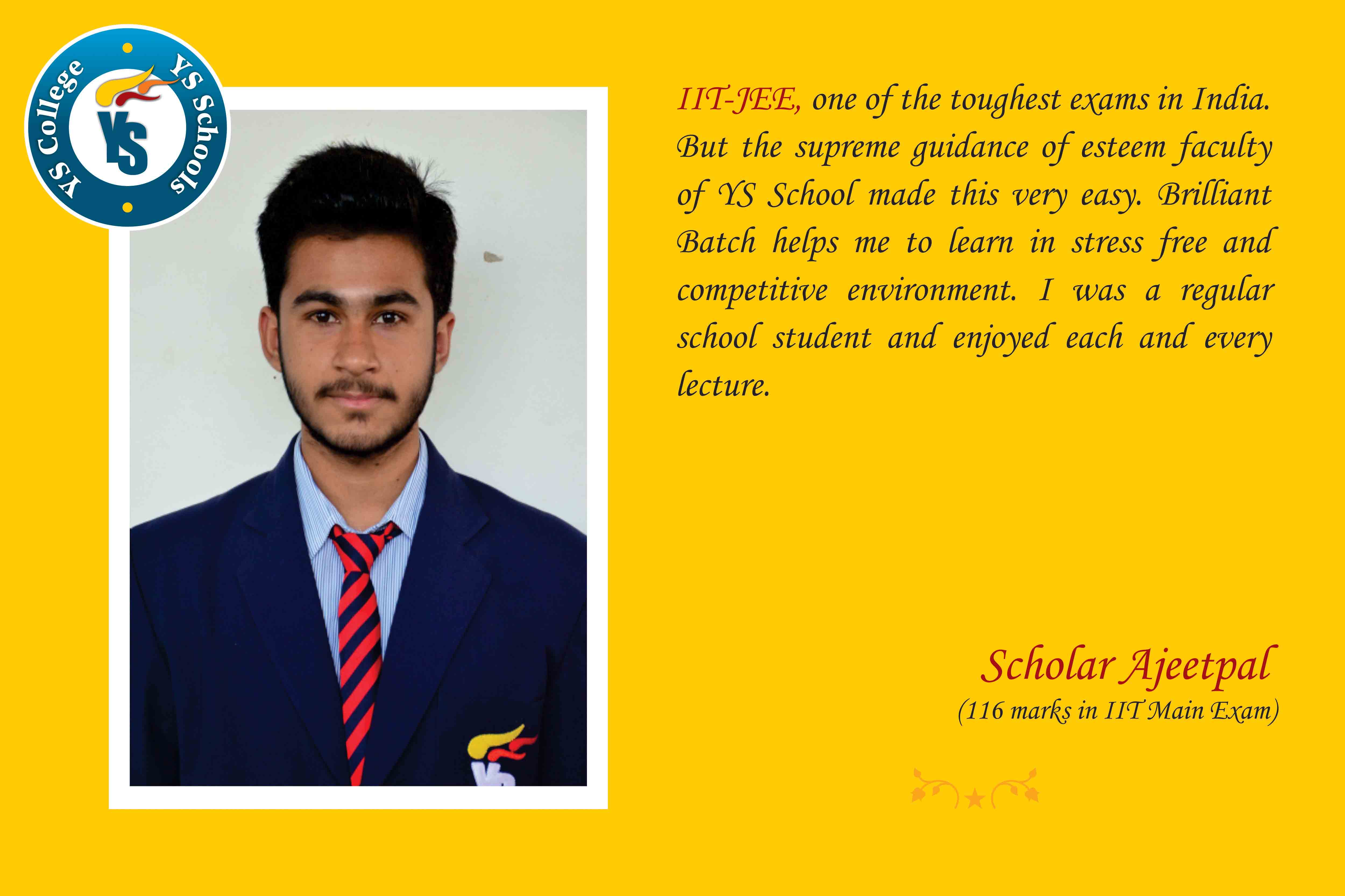 In 2012, One of Our Student, Scholar Priyanshu Goyal brought laurels to the School by securing seat in IITJEE Examination